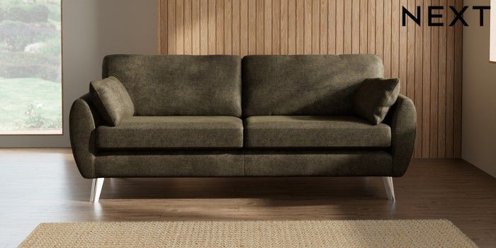 7.2.10 Wilson 3 Seater Sofa Plush Chenille Moss Green Metal Tapered - Chrome | Made Click here to use our website with more accessibility support, for example screen readers