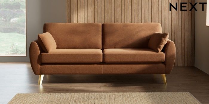 7.2.10 Wilson 3 Seater Sofa Ripple Chenille Mid Rust Brown Metal Tapered - Gold | Made Click here to use our website with more accessibility support, for example screen readers