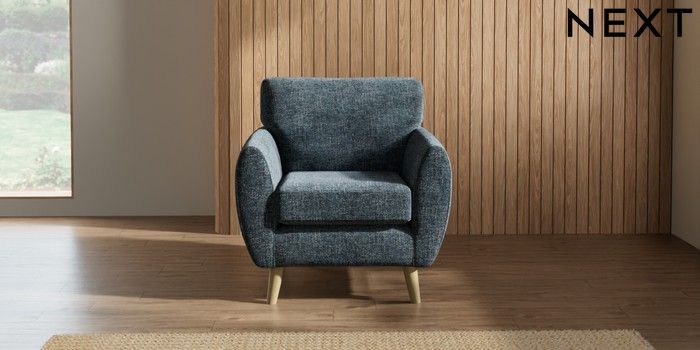 7.2.10 Wilson Armchair Chunky Chenille Dark Navy Blue Retro Tapered - Light | Made Click here to use our website with more accessibility support, for example screen readers