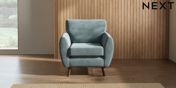 7.2.10 Wilson Armchair Chunky Chenille Light Teal Green Retro Tapered - Mid | Made Click here to use our website with more accessibility support, for example screen readers