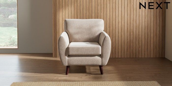 7.2.10 Wilson Armchair Cotswold Chenille Light Natural Retro Tapered - Dark Brown | Made Click here to use our website with more accessibility support, for example screen readers