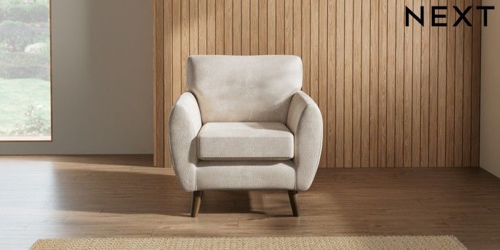 7.2.10 Wilson Armchair Plush Chenille Oyster Retro Tapered - Mid | Made Click here to use our website with more accessibility support, for example screen readers