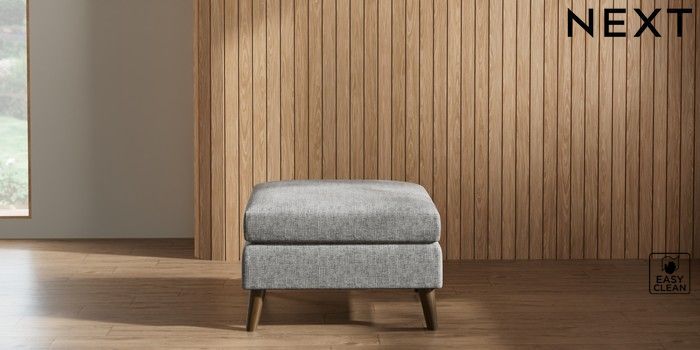 7.2.10 Wilson Footstool Chunky Boucle Easy Clean Light Grey Retro Tapered - Mid | Made Click here to use our website with more accessibility support, for example screen readers