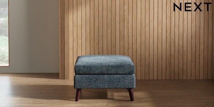 7.2.10 Wilson Footstool Chunky Chenille Dark Navy Blue Retro Tapered - Dark Brown | Made Click here to use our website with more accessibility support, for example screen readers