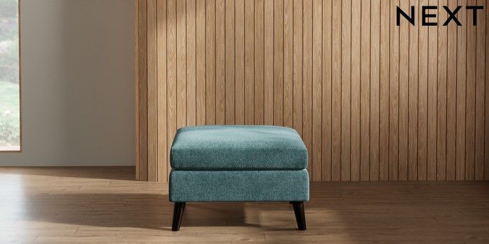 7.2.10 Wilson Footstool Chunky Chenille Mid Teal Green Retro Tapered - Dark | Made Click here to use our website with more accessibility support, for example screen readers