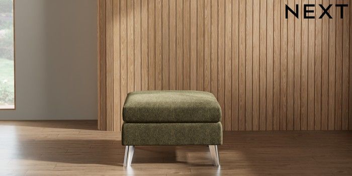 7.2.10 Wilson Footstool Cotswold Chenille Dark Green Metal Tapered - Chrome | Made Click here to use our website with more accessibility support, for example screen readers