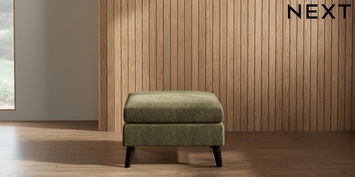 7.2.10 Wilson Footstool Cotswold Chenille Dark Green Retro Tapered - Dark | Made Click here to use our website with more accessibility support, for example screen readers