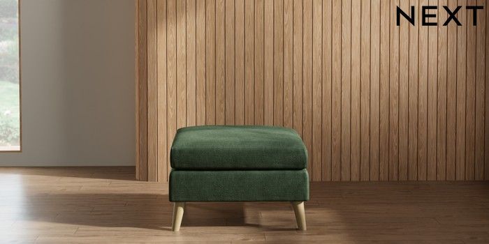 7.2.10 Wilson Footstool Luxe Chenille Dark Green Retro Tapered - Light | Made Click here to use our website with more accessibility support, for example screen readers