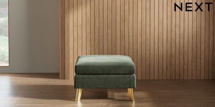 7.2.10 Wilson Footstool Luxe Chenille Mid Green Metal Tapered - Gold | Made Click here to use our website with more accessibility support, for example screen readers