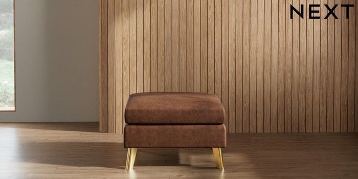 7.2.10 Wilson Footstool Monza Faux Leather Easy Clean Chestnut Brown Metal Tapered - Gold | Made Click here to use our website with more accessibility support, for example screen readers