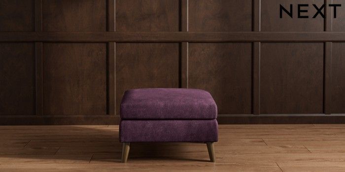 7.2.10 Wilson Footstool Plush Chenille Dark Plum Purple Retro Tapered - Mid | Made Click here to use our website with more accessibility support, for example screen readers