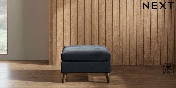 7.2.10 Wilson Footstool Plush Velvet Easy Clean Charcoal Grey Retro Tapered - Mid | Made Click here to use our website with more accessibility support, for example screen readers
