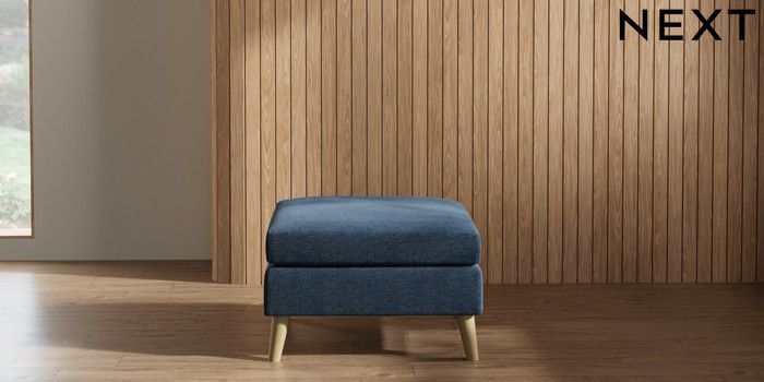7.2.10 Wilson Footstool Ripple Chenille Dark Blue Retro Tapered - Light | Made Click here to use our website with more accessibility support, for example screen readers
