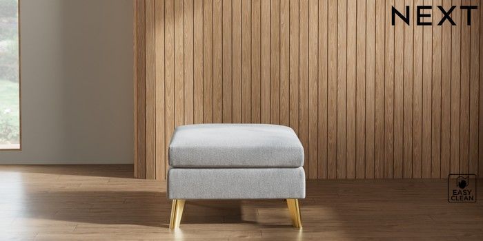7.2.10 Wilson Footstool Tweedy Blend Easy Clean Light Silver Grey Metal Tapered - Gold | Made Click here to use our website with more accessibility support, for example screen readers