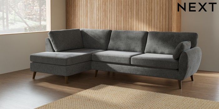 7.2.10 Wilson Large Corner Chaise - Left Hand Chunky Chenille Dark Grey Retro Tapered - Mid | Made Click here to use our website with more accessibility support, for example screen readers