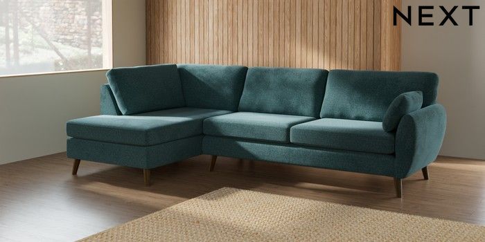 7.2.10 Wilson Large Corner Chaise - Left Hand Chunky Chenille Mid Teal Green Retro Tapered - Mid | Made Click here to use our website with more accessibility support, for example screen readers