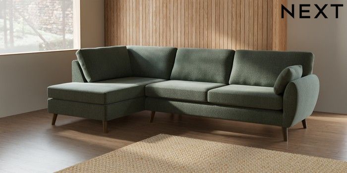 7.2.10 Wilson Large Corner Chaise - Left Hand Chunky Texture Mid Forest Green Retro Tapered - Mid | Made Click here to use our website with more accessibility support, for example screen readers