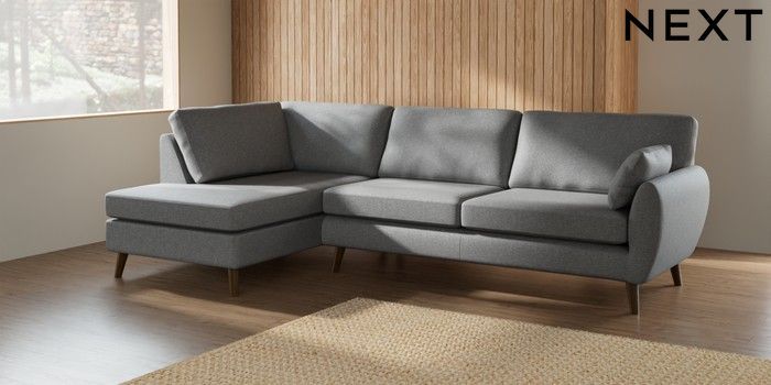 7.2.10 Wilson Large Corner Chaise - Left Hand Chunky Weave Mid Grey Retro Tapered - Mid | Made Click here to use our website with more accessibility support, for example screen readers