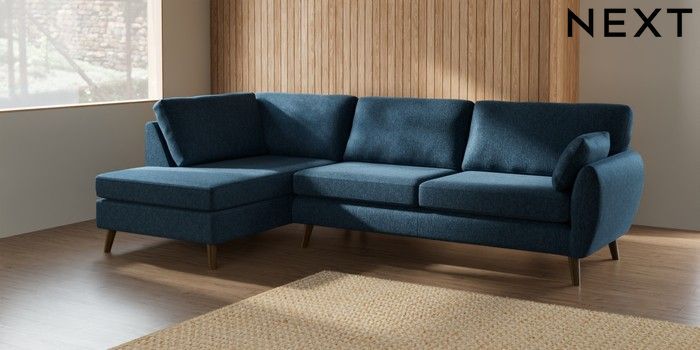 7.2.10 Wilson Large Corner Chaise - Left Hand Cotswold Chenille Dark Blue Retro Tapered - Mid | Made Click here to use our website with more accessibility support, for example screen readers