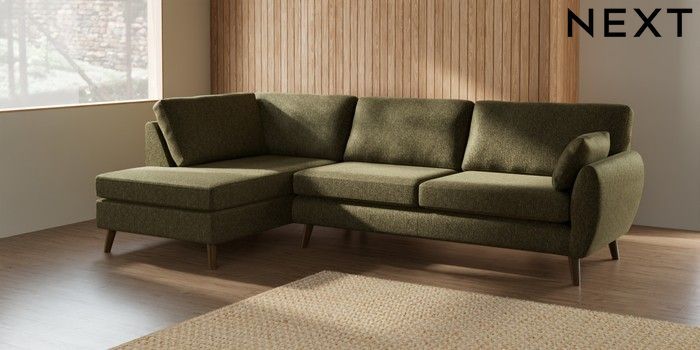 7.2.10 Wilson Large Corner Chaise - Left Hand Cotswold Chenille Dark Green Retro Tapered - Mid | Made Click here to use our website with more accessibility support, for example screen readers