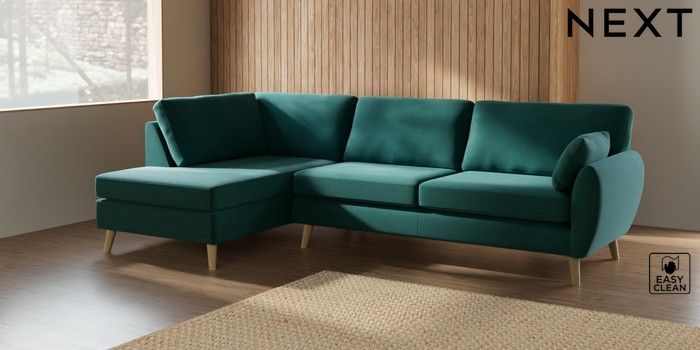 7.2.10 Wilson Large Corner Chaise - Left Hand Fine Chenille Easy Clean Dark Juniper Green Retro Tapered - Light | Made Click here to use our website with more accessibility support, for example screen readers