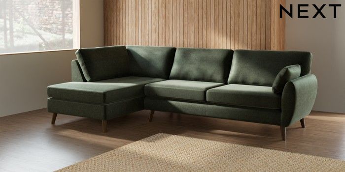 7.2.10 Wilson Large Corner Chaise - Left Hand Luxe Chenille Mid Green Retro Tapered - Mid | Made Click here to use our website with more accessibility support, for example screen readers