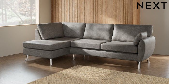 7.2.10 Wilson Large Corner Chaise - Left Hand Plush Chenille Light Grey Metal Tapered - Chrome | Made Click here to use our website with more accessibility support, for example screen readers