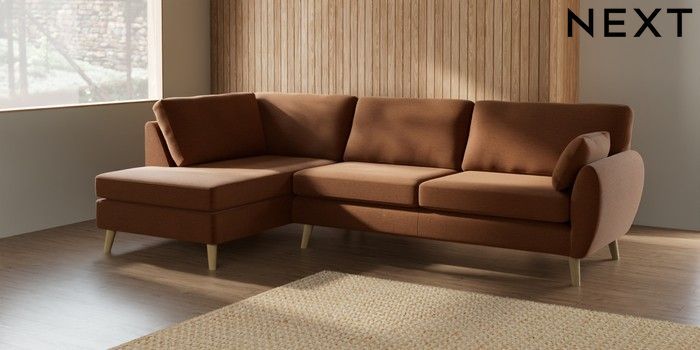 7.2.10 Wilson Large Corner Chaise - Left Hand Ripple Chenille Mid Rust Brown Retro Tapered - Light | Made Click here to use our website with more accessibility support, for example screen readers