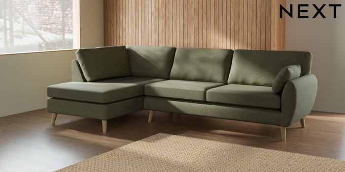 7.2.10 Wilson Large Corner Chaise - Left Hand Tweedy Chenille Mid Moss Green Retro Tapered - Light | Made Click here to use our website with more accessibility support, for example screen readers