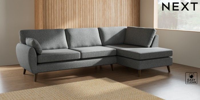 7.2.10 Wilson Large Corner Chaise - Right Hand Chunky Boucle Easy Clean Mid Grey Retro Tapered - Mid | Made Click here to use our website with more accessibility support, for example screen readers