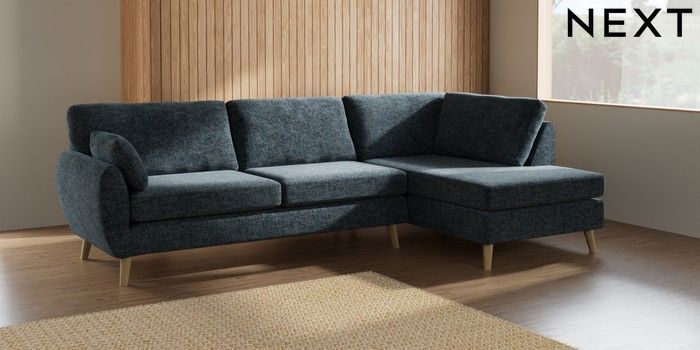 7.2.10 Wilson Large Corner Chaise - Right Hand Chunky Chenille Dark Navy Blue Retro Tapered - Light | Made Click here to use our website with more accessibility support, for example screen readers
