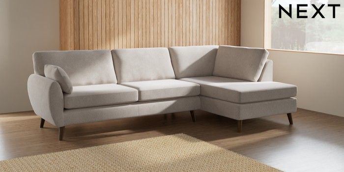 7.2.10 Wilson Large Corner Chaise - Right Hand Chunky Chenille Oyster Retro Tapered - Mid | Made Click here to use our website with more accessibility support, for example screen readers