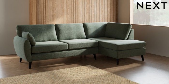 7.2.10 Wilson Large Corner Chaise - Right Hand Chunky Texture Mid Forest Green Retro Tapered - Dark | Made Click here to use our website with more accessibility support, for example screen readers