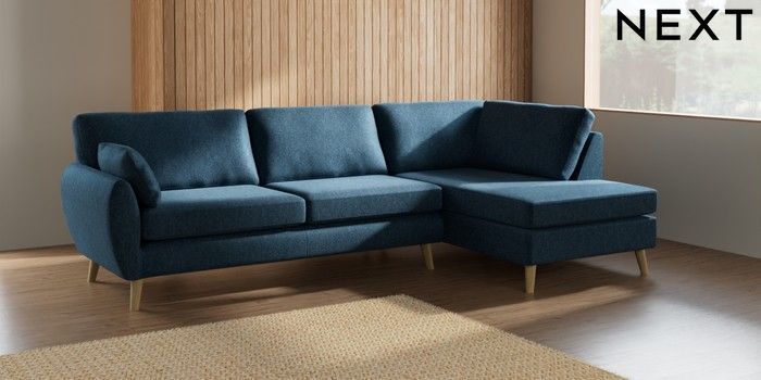 7.2.10 Wilson Large Corner Chaise - Right Hand Cotswold Chenille Dark Blue Retro Tapered - Light | Made Click here to use our website with more accessibility support, for example screen readers