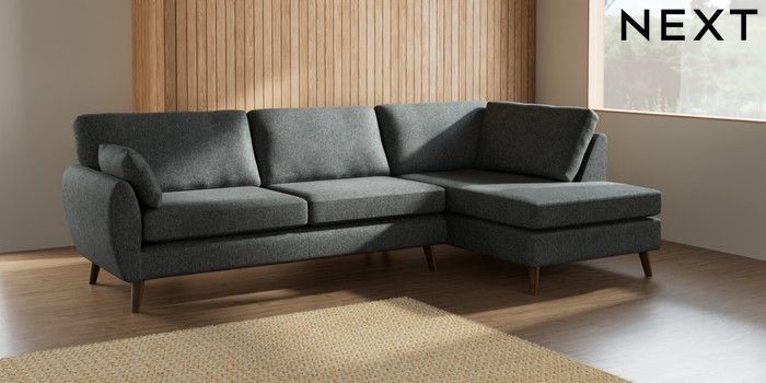 7.2.10 Wilson Large Corner Chaise - Right Hand Cotswold Chenille Dark Grey Retro Tapered - Mid | Made Click here to use our website with more accessibility support, for example screen readers