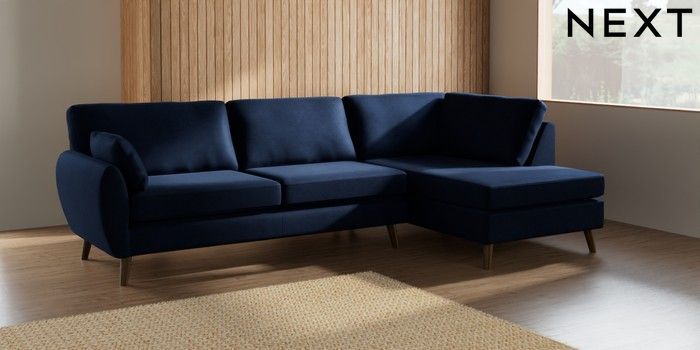 7.2.10 Wilson Large Corner Chaise - Right Hand Luxe Chenille Navy Blue Retro Tapered - Mid | Made Click here to use our website with more accessibility support, for example screen readers
