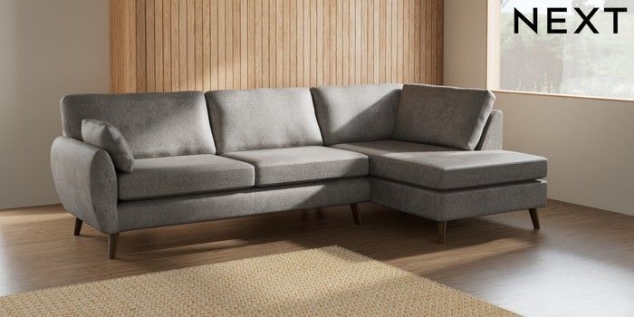 7.2.10 Wilson Large Corner Chaise - Right Hand Plush Chenille Light Grey Retro Tapered - Mid | Made Click here to use our website with more accessibility support, for example screen readers