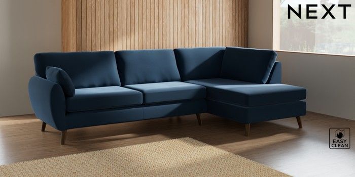 7.2.10 Wilson Large Corner Chaise - Right Hand Plush Velvet Easy Clean Airforce Blue Retro Tapered - Mid | Made Click here to use our website with more accessibility support, for example screen readers