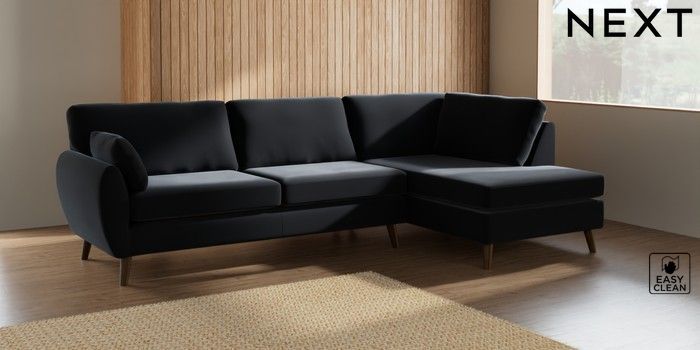 7.2.10 Wilson Large Corner Chaise - Right Hand Plush Velvet Easy Clean Charcoal Grey Retro Tapered - Mid | Made Click here to use our website with more accessibility support, for example screen readers