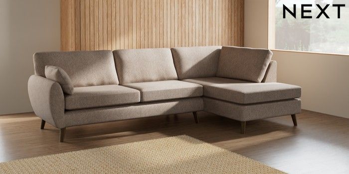7.2.10 Wilson Large Corner Chaise - Right Hand Tweedy Chenille Mid Natural Retro Tapered - Mid | Made Click here to use our website with more accessibility support, for example screen readers