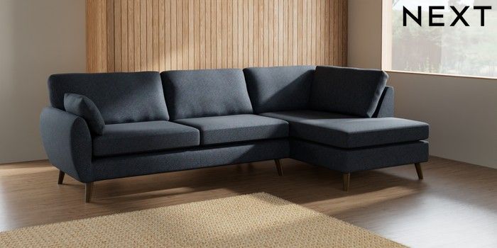 7.2.10 Wilson Large Corner Chaise - Right Hand Tweedy Chenille Navy Blue Retro Tapered - Mid | Made Click here to use our website with more accessibility support, for example screen readers