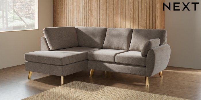 7.2.10 Wilson Medium Corner Chaise - Left Hand Chunky Chenille Light Dove Metal Tapered - Gold | Made Click here to use our website with more accessibility support, for example screen readers