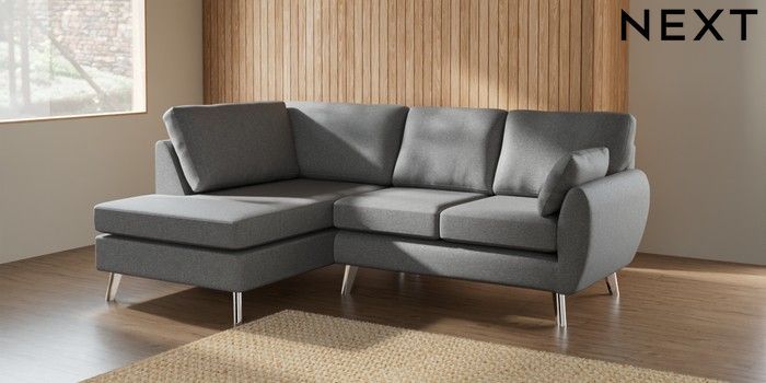 7.2.10 Wilson Medium Corner Chaise - Left Hand Chunky Weave Mid Grey Metal Tapered - Chrome | Made Click here to use our website with more accessibility support, for example screen readers
