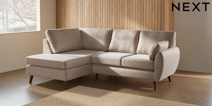 7.2.10 Wilson Medium Corner Chaise - Left Hand Cotswold Chenille Light Natural Retro Tapered - Mid | Made Click here to use our website with more accessibility support, for example screen readers