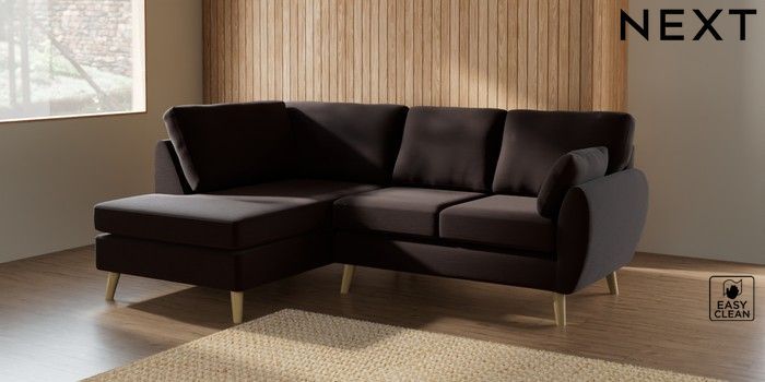 7.2.10 Wilson Medium Corner Chaise - Left Hand Fine Chenille Easy Clean Chocolate Brown Retro Tapered - Light | Made Click here to use our website with more accessibility support, for example screen readers