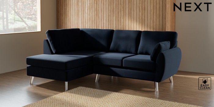 7.2.10 Wilson Medium Corner Chaise - Left Hand Fine Chenille Easy Clean Dark Navy Blue Metal Tapered - Chrome | Made Click here to use our website with more accessibility support, for example screen readers