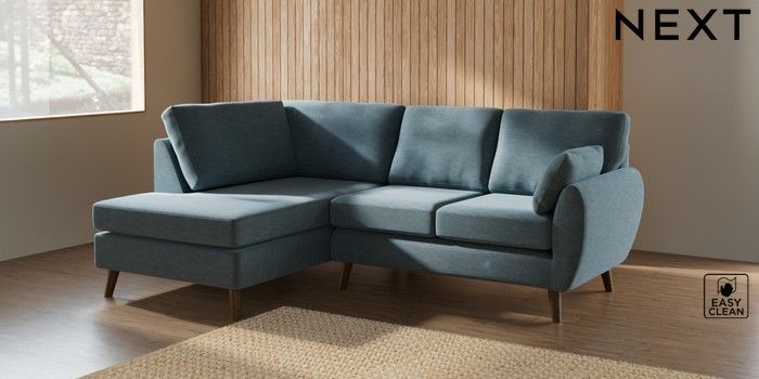7.2.10 Wilson Medium Corner Chaise - Left Hand Fine Chenille Easy Clean Mid Blue Retro Tapered - Mid | Made Click here to use our website with more accessibility support, for example screen readers