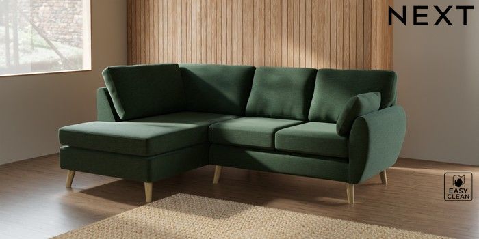7.2.10 Wilson Medium Corner Chaise - Left Hand Fine Chenille Easy Clean Mid Khaki Green Retro Tapered - Light | Made Click here to use our website with more accessibility support, for example screen readers