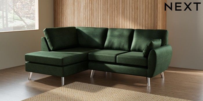 7.2.10 Wilson Medium Corner Chaise - Left Hand Luxe Chenille Dark Green Metal Tapered - Chrome | Made Click here to use our website with more accessibility support, for example screen readers
