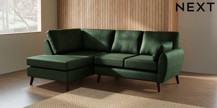 7.2.10 Wilson Medium Corner Chaise - Left Hand Luxe Chenille Dark Green Retro Tapered - Dark Brown | Made Click here to use our website with more accessibility support, for example screen readers
